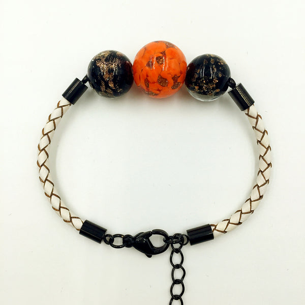 Bead: main-orange colored glass, side-goldleaf black colored glass